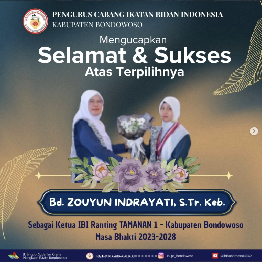 Sebagai Ketua Ranting TAMANAN 1 IBI Kabupaten Bondowoso, Masa Bhakti 2023-2028.