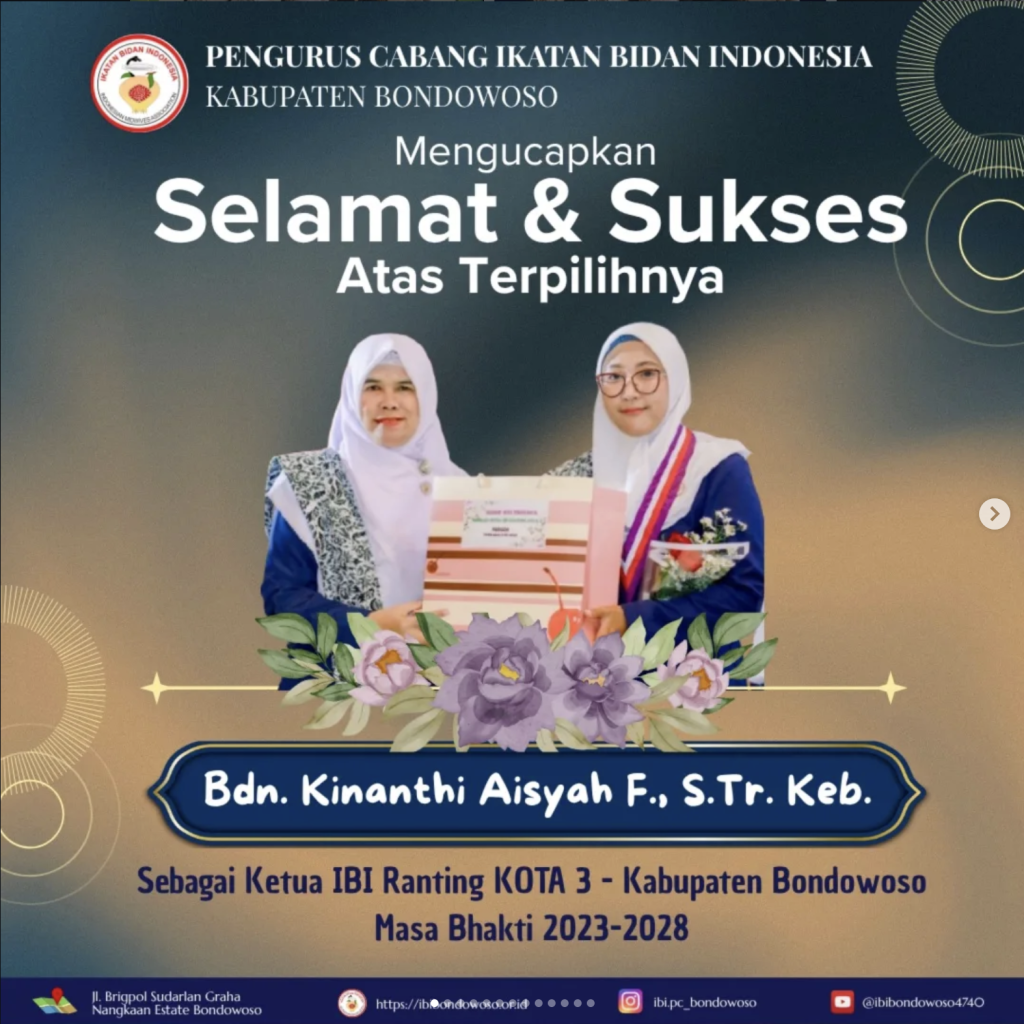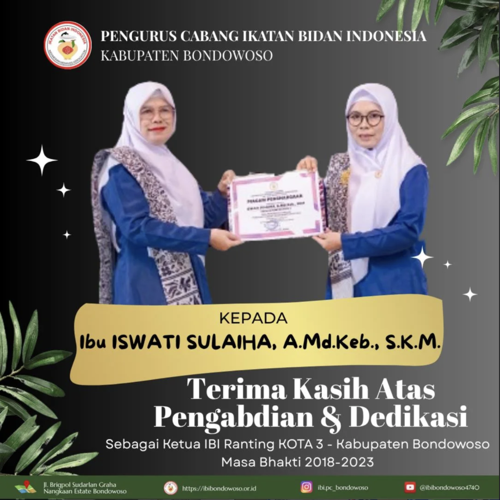 Sebagai Ketua IBI Ranting KOTA 3 Kabupaten Bondowoso, Masa Bhakti 2023-2028.