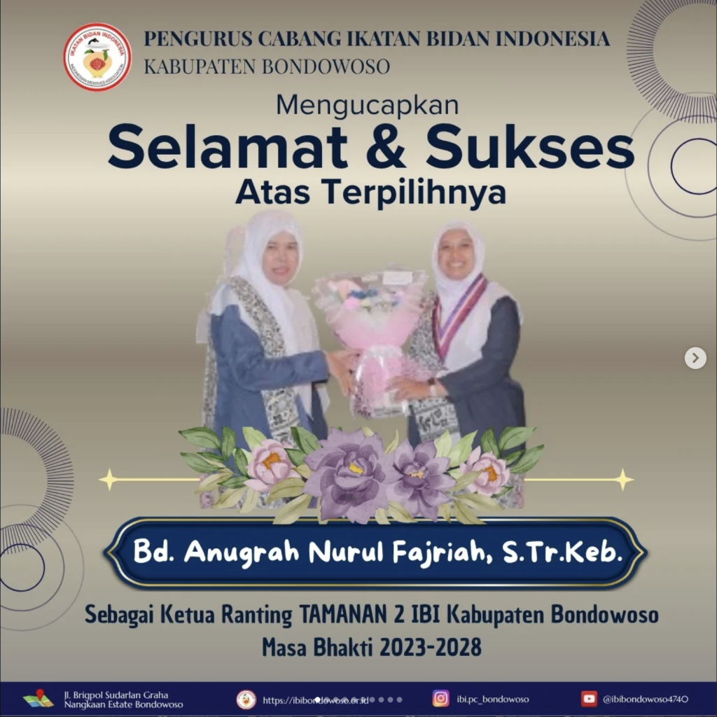 Sebagai Ketua Ranting TAMANAN 2 IBI Kabupaten Bondowoso, Masa Bhakti 2023-2028.